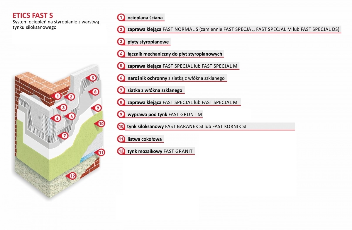 Poszczególne warstwy systemu ociepleń ETICS FAST S pełnią w układzie ocieplającym ściśle określone funkcje: